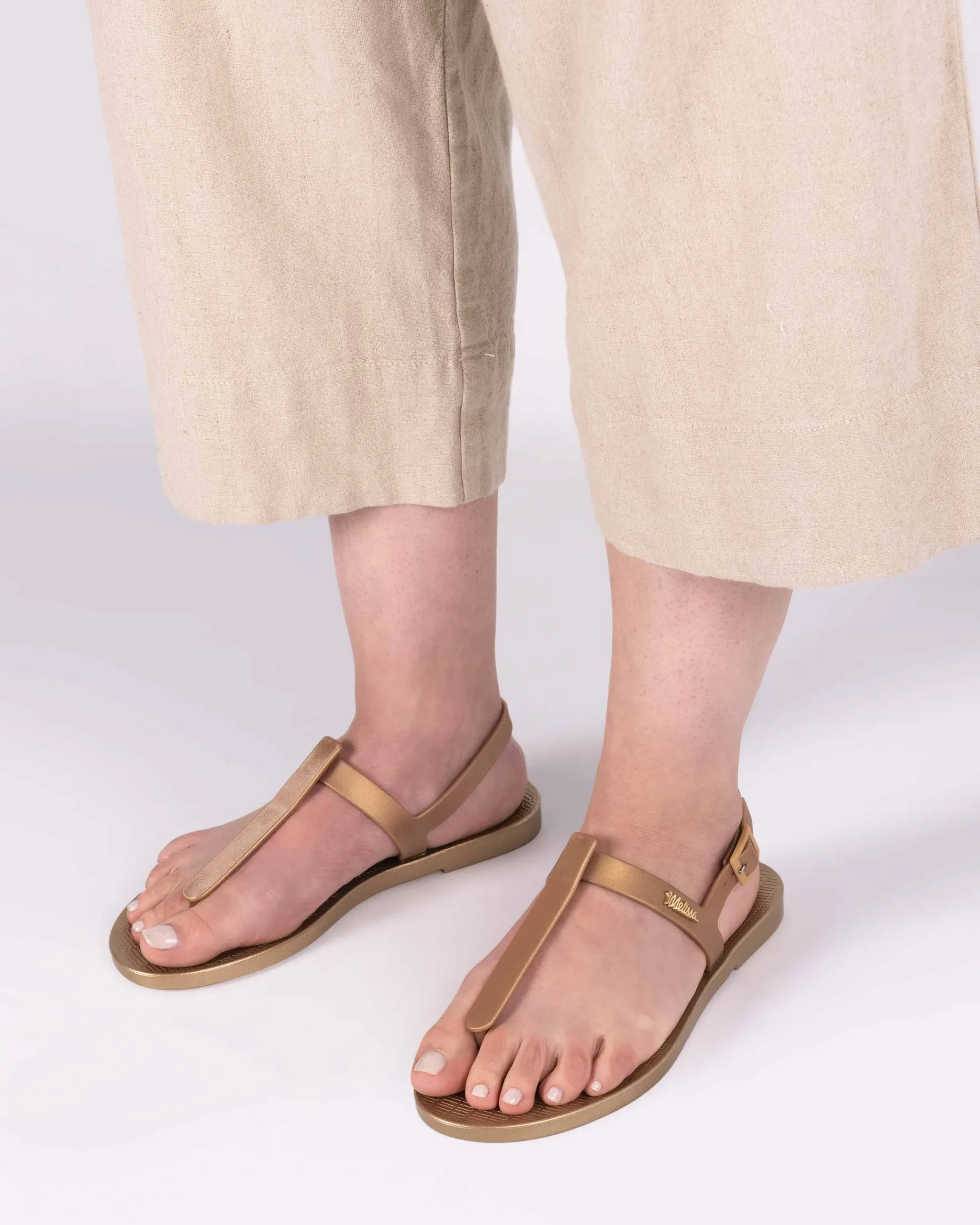 Nothing is more summery than a fresh and clean shape. Melissa Sun Ventura Metallic is a sandal with Melflex straps and a texture reminiscent of beach mats. New metallic colors are offered in the new design, bringing even more glamour to your summer. An excellent choice to put together casual looks and as a gift.