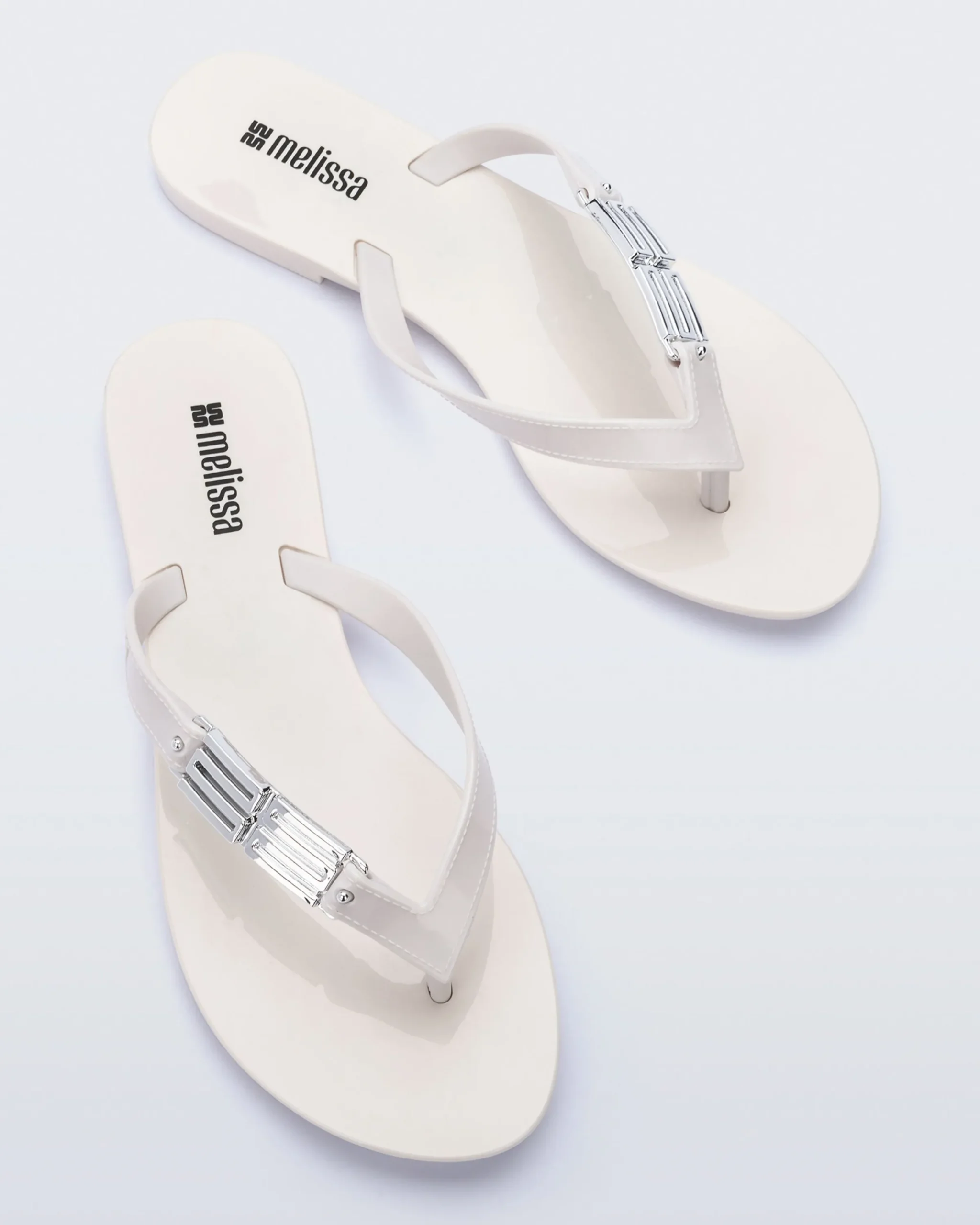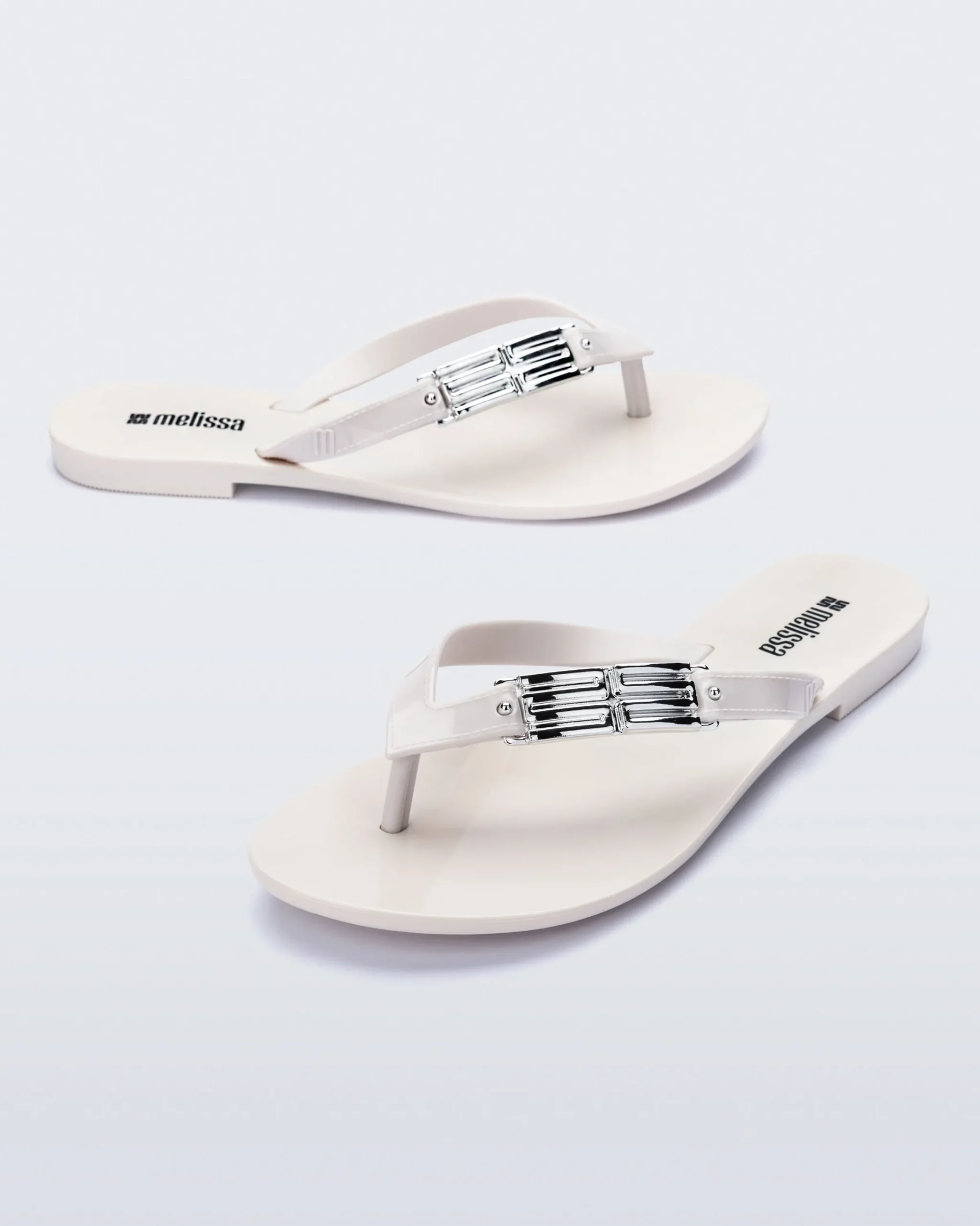 The Melissa Harmonic M Chic Flip adds a touch of elegance to a simple flip silhouette. Metallic “M” appliqués give a hint of personality while the Melflex base adds flexible comfort.