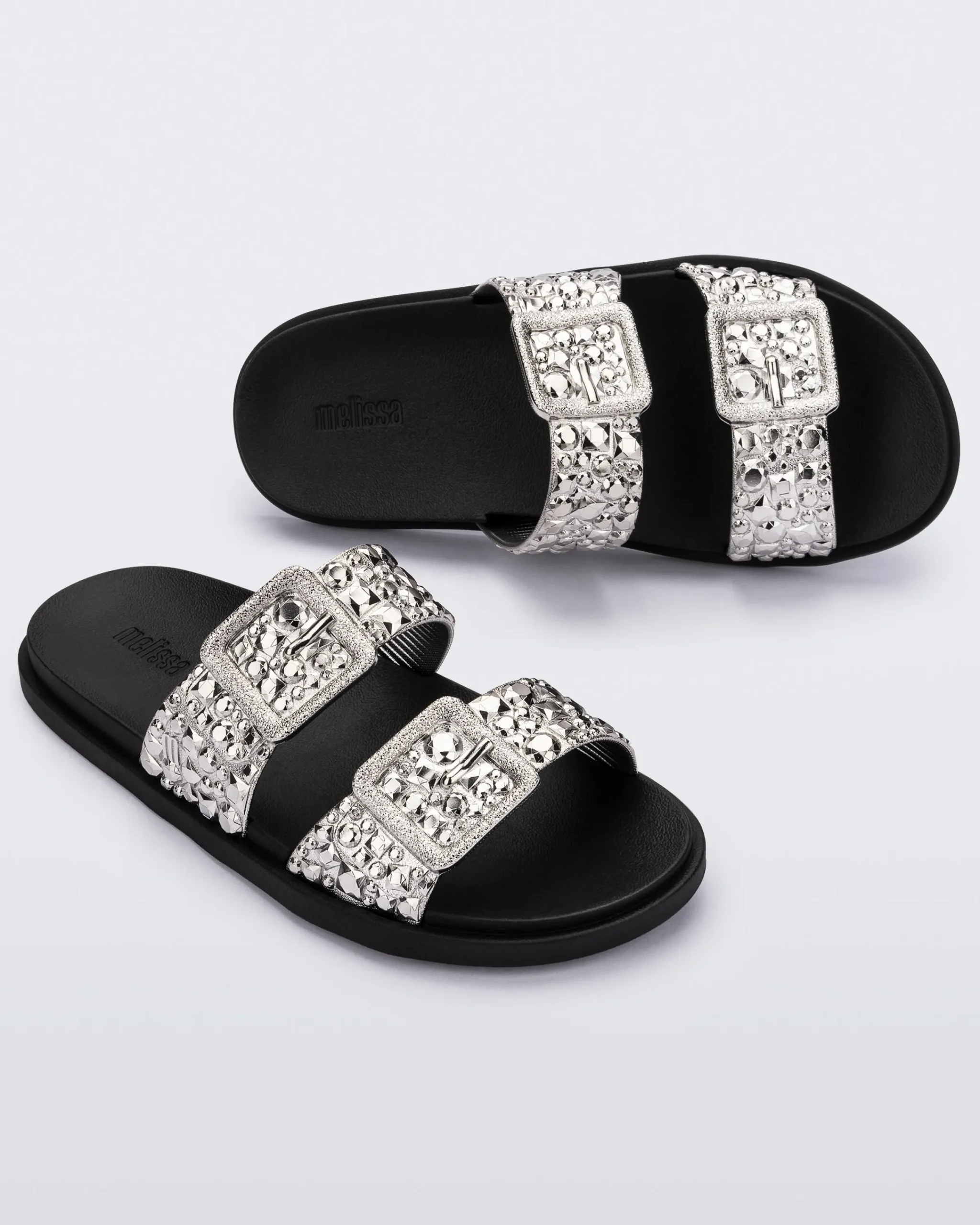 Get ready to dazzle with the Melissa Lust Slide. This fashion-forward slide sandal boasts a beautiful chrome upper. The expanded outsole ensures ultra-lightweight comfort and the buckles add a touch of edge to this dazzling design. Because who says casual can’t be captivating?