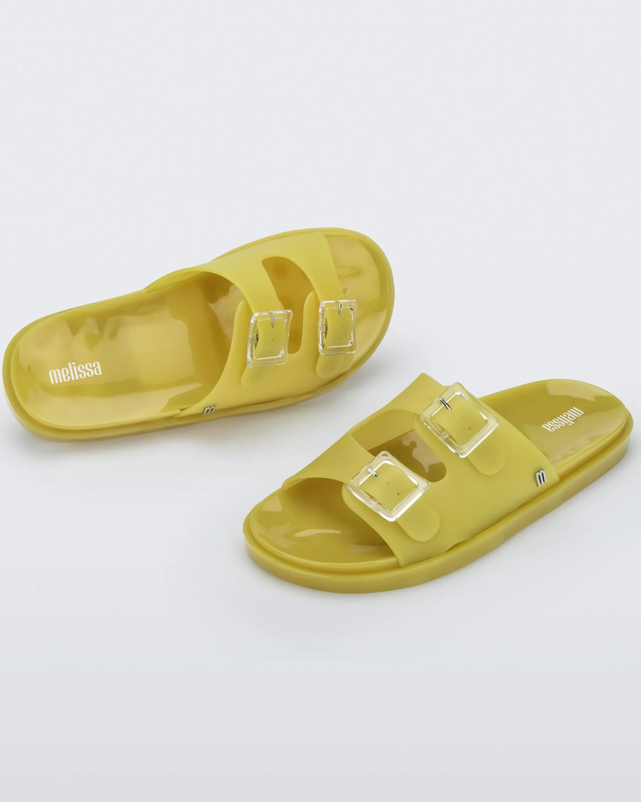 Comfy and fashionable, Melissa Wide is inspired by the super-classic shape that viralized in the 90s. The slide with buckles is one of the most famous style through European summer, thanks to its simplicity, practicability, and versatility.