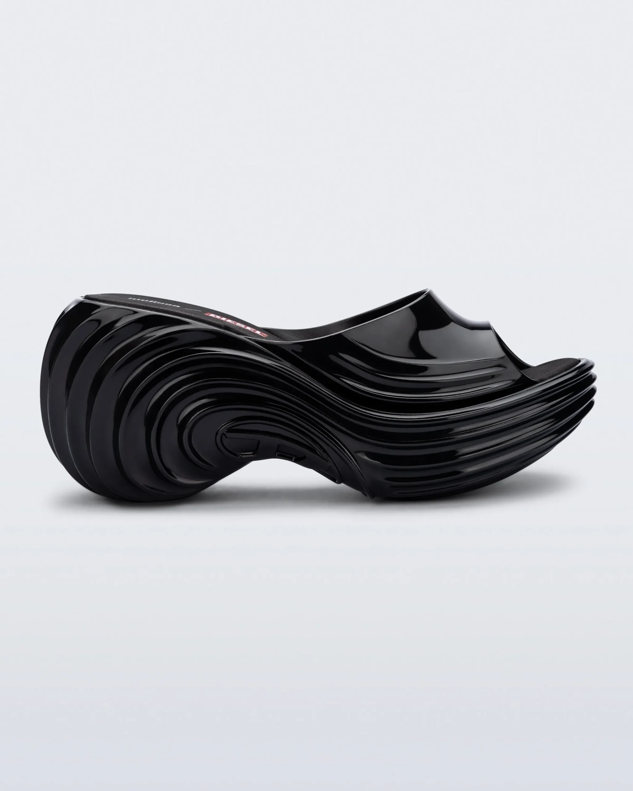 The Melissa/Diesel collection introduces the future of footwear with the Quantum Platform. Parametric design and optical art influence the bold aesthetic of this futuristic, elevated sandal, fusing innovation with algorithmic inspiration. The design is a testament to bold creativity and meticulous execution, with a flawless combination of sophisticated color palettes, modern textures, and advanced technologies. Signature to the collection is the Diesel “D” monogram, re-imagined as a striking aesthetic element that perfectly enhances the dynamic and contemporary character of the designs.