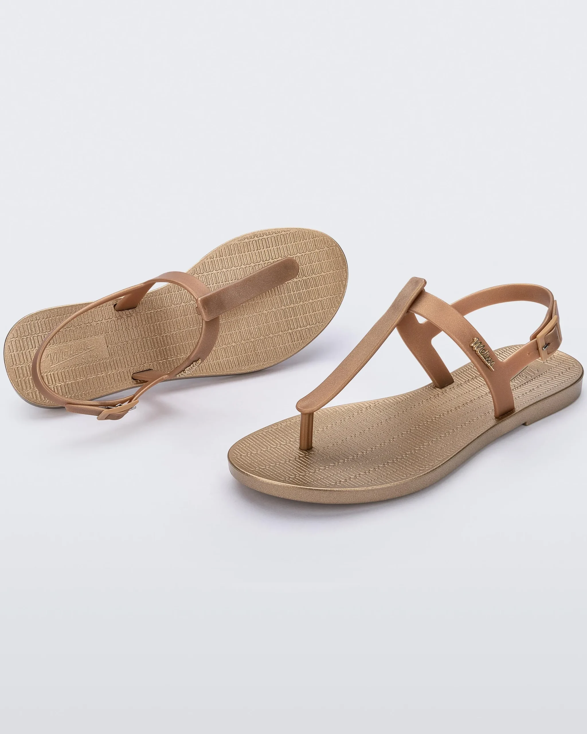 Nothing is more summery than a fresh and clean shape. Melissa Sun Ventura Metallic is a sandal with Melflex straps and a texture reminiscent of beach mats. New metallic colors are offered in the new design, bringing even more glamour to your summer. An excellent choice to put together casual looks and as a gift.