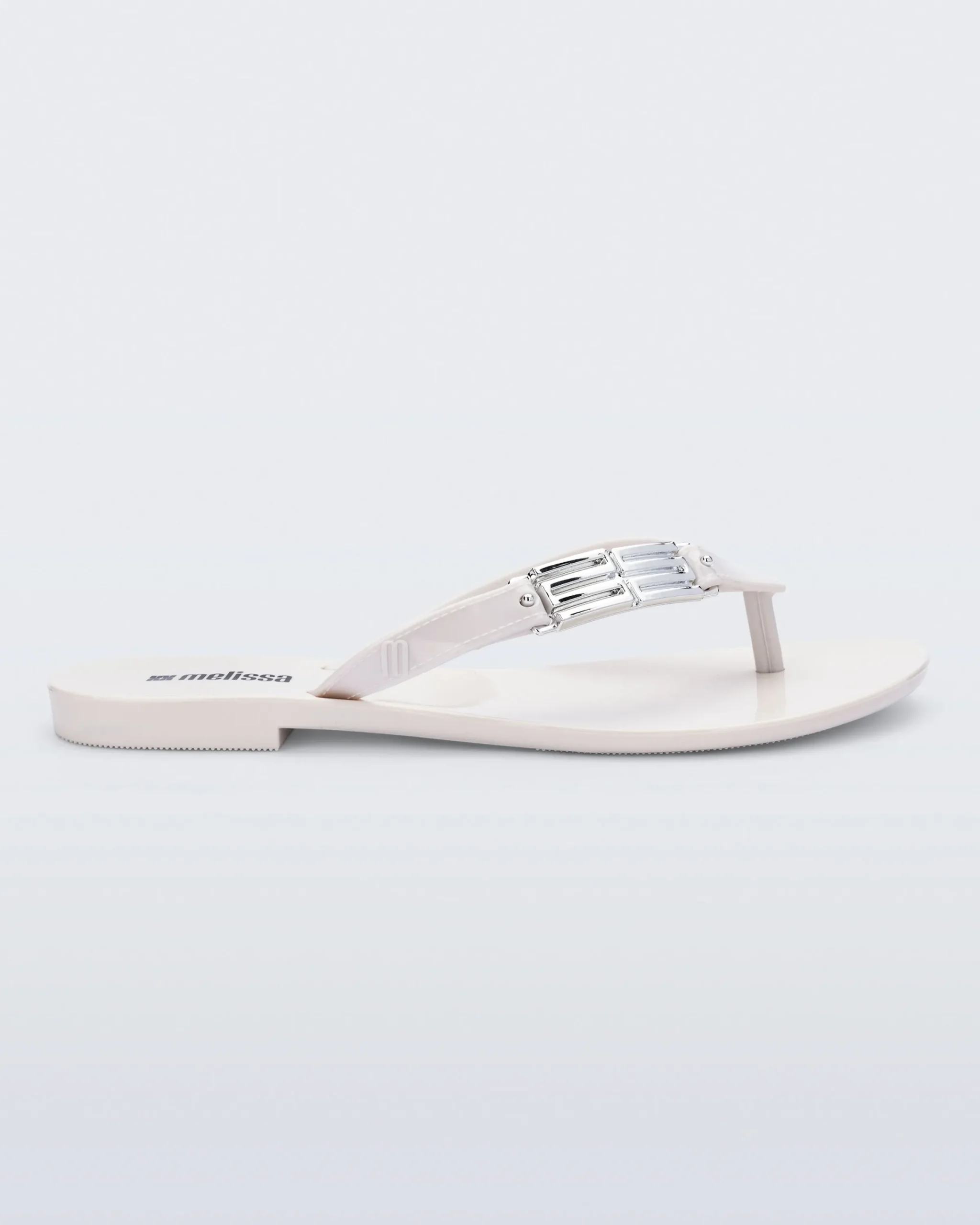 The Melissa Harmonic M Chic Flip adds a touch of elegance to a simple flip silhouette. Metallic “M” appliqués give a hint of personality while the Melflex base adds flexible comfort.
