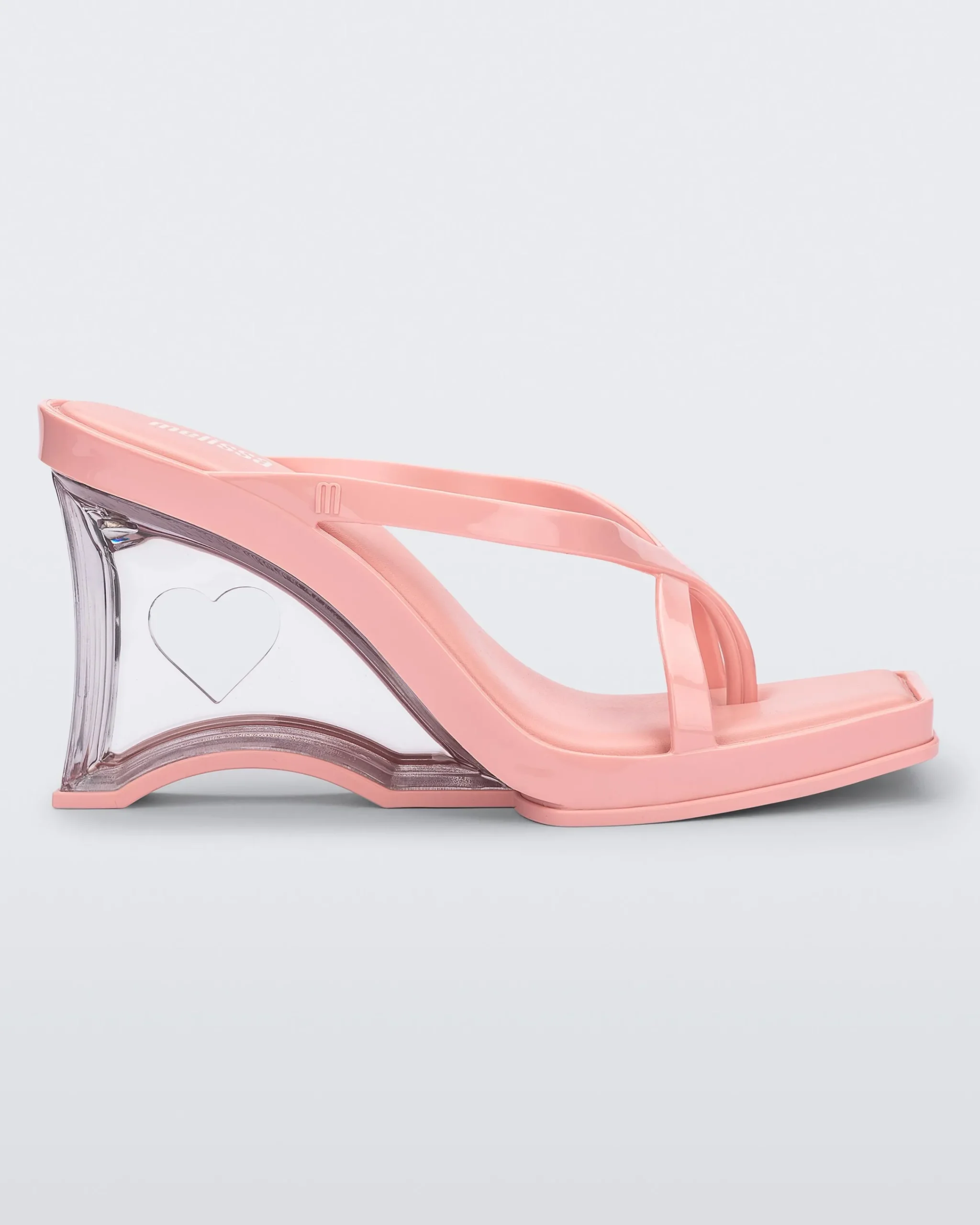- Heart cutout detail on the translucent wedge
