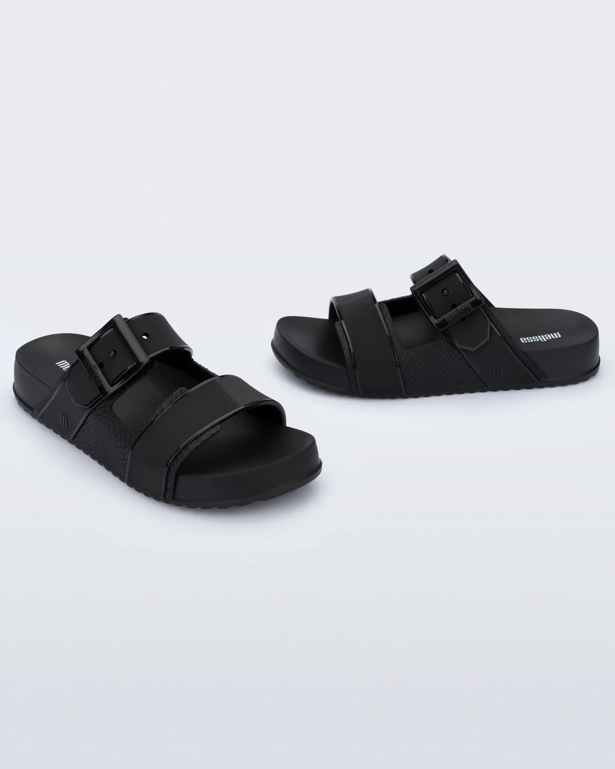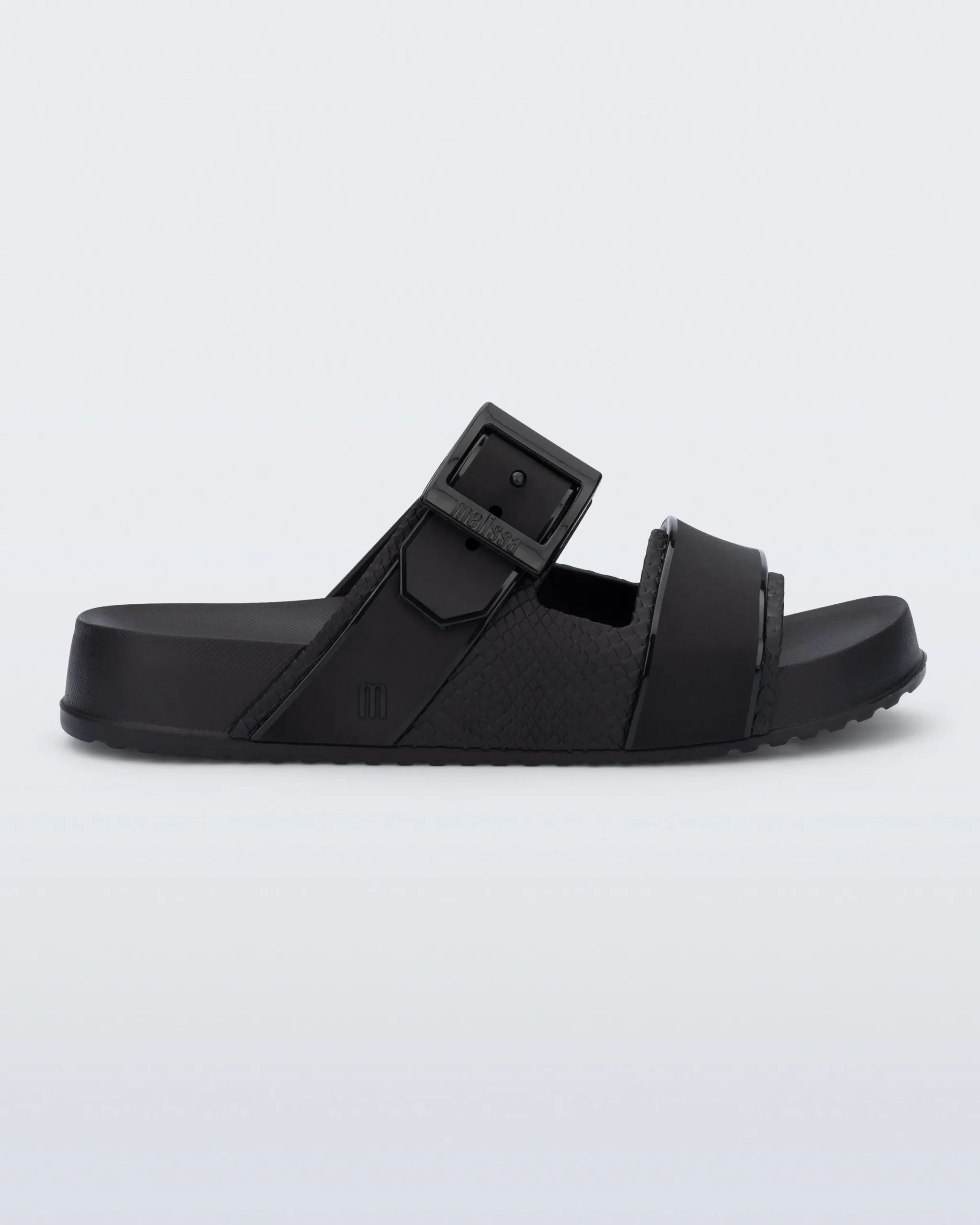 - Molded snakeskin textural pattern on uppers