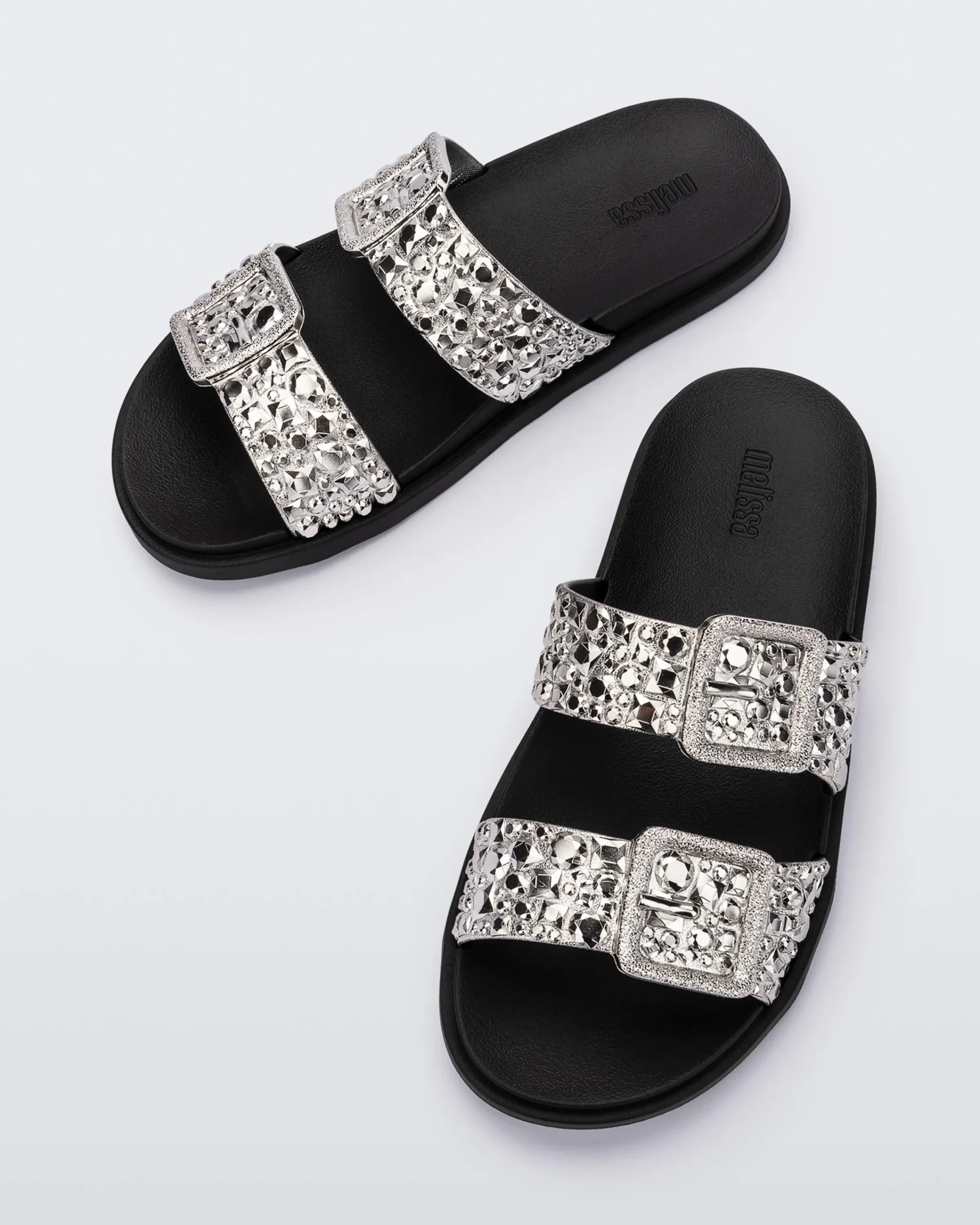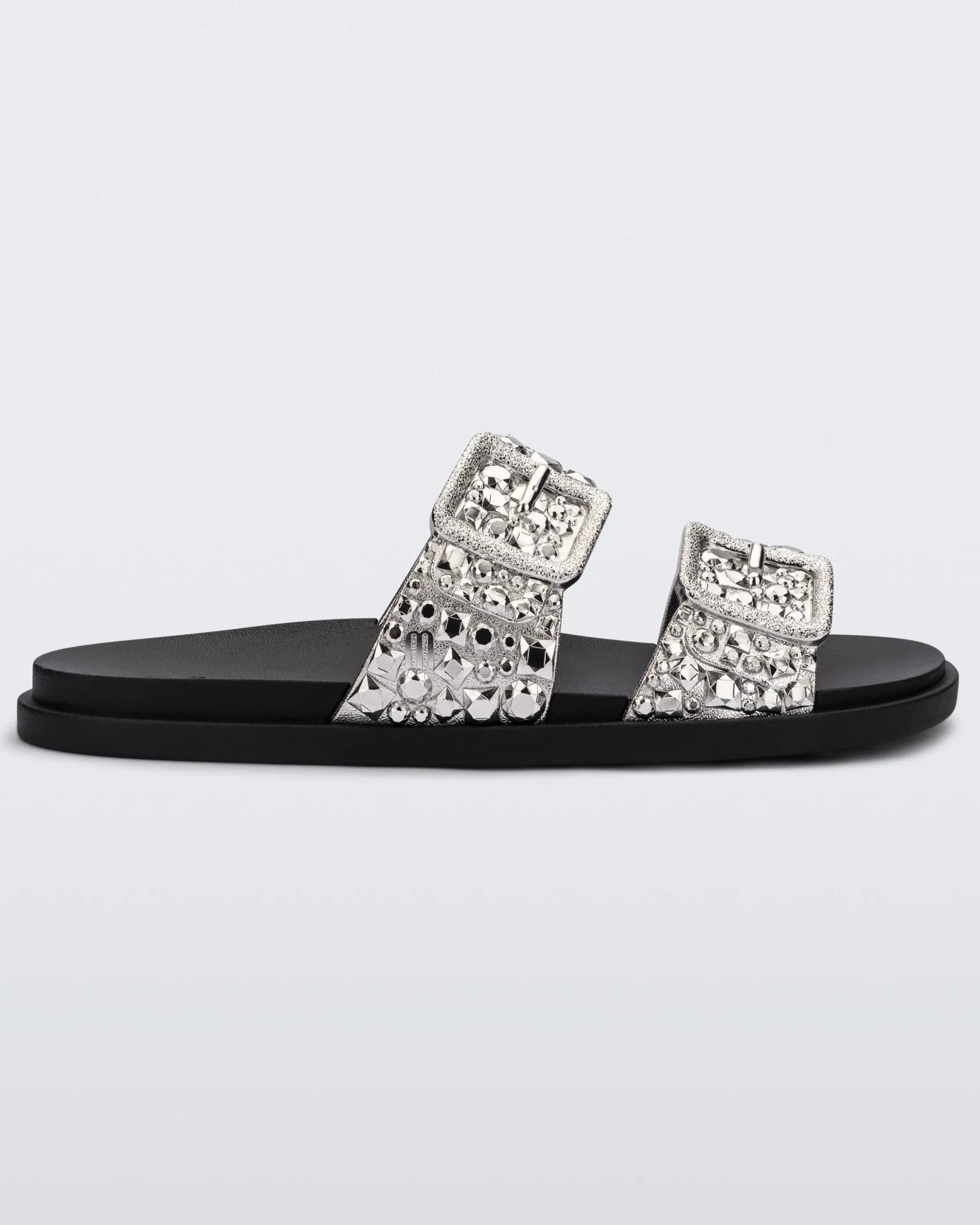 Get ready to dazzle with the Melissa Lust Slide. This fashion-forward slide sandal boasts a beautiful chrome upper. The expanded outsole ensures ultra-lightweight comfort and the buckles add a touch of edge to this dazzling design. Because who says casual can’t be captivating?