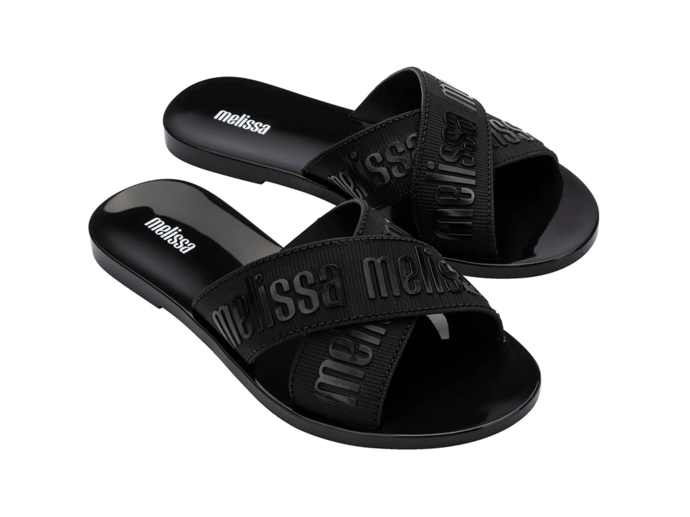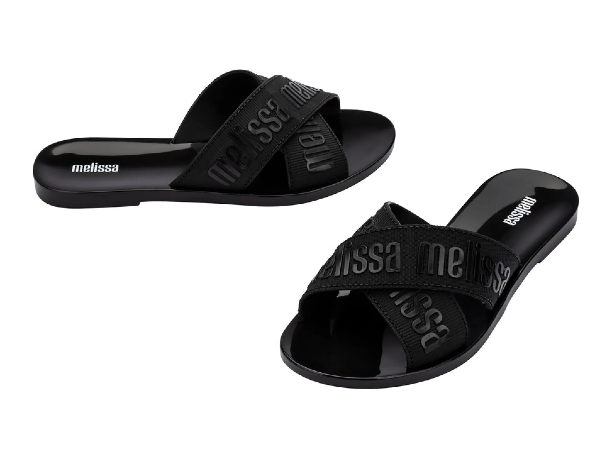 Slide into sunshine with the Melissa M Lover Slide, your perfect lightweight companion for those warm-weather days. Their upper features two thick cross straps, laser-textured with a polished Melissa logo, adding a touch of cool-girl to any laid-back style.