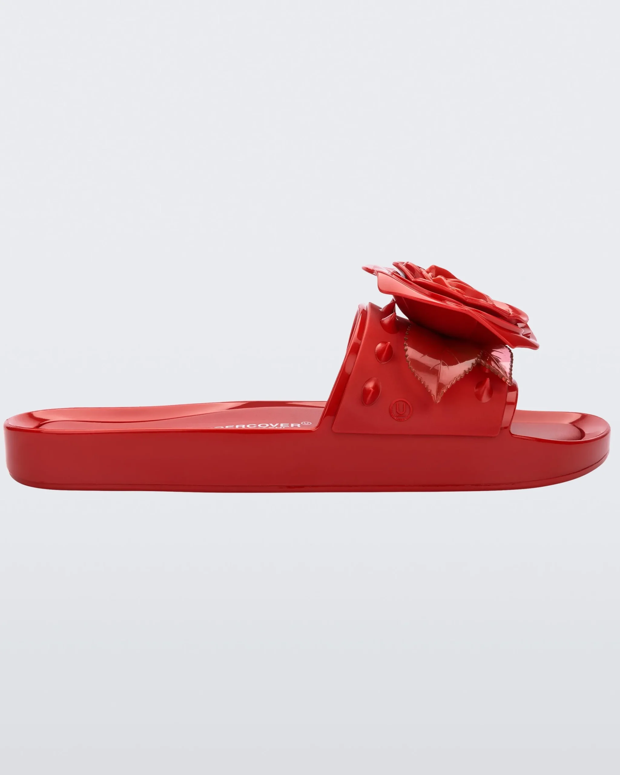 Melissa + Undercover Spike is a new version of Melissas’s classic shape: the beach slide. In this super cool version, the slide gets the maxi rose adornment on the Upper strip, with translucent leaves and spikes. It is the perfect choice for those who want to add fashion information to the look of day to day.