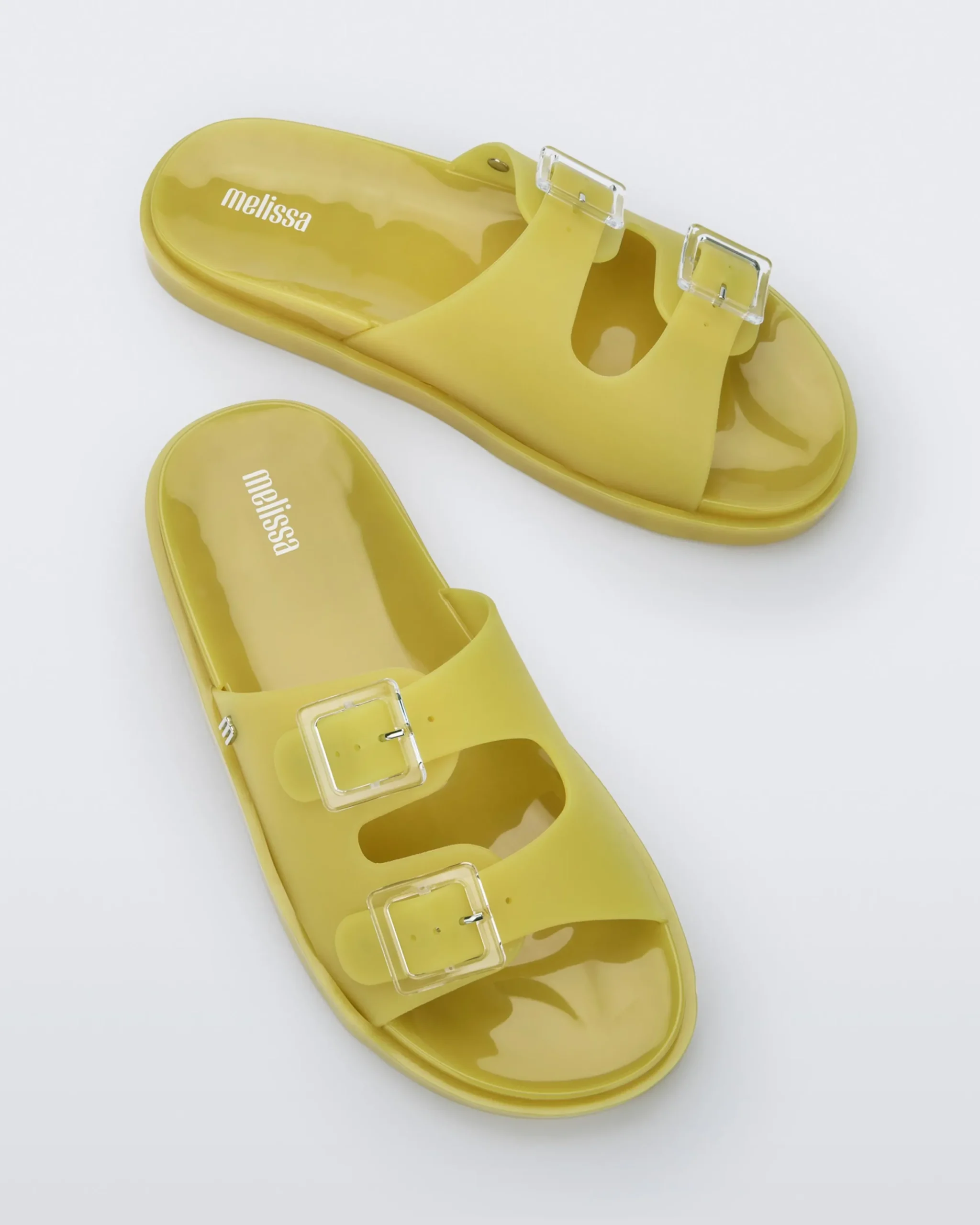 Comfy and fashionable, Melissa Wide is inspired by the super-classic shape that viralized in the 90s. The slide with buckles is one of the most famous style through European summer, thanks to its simplicity, practicability, and versatility.