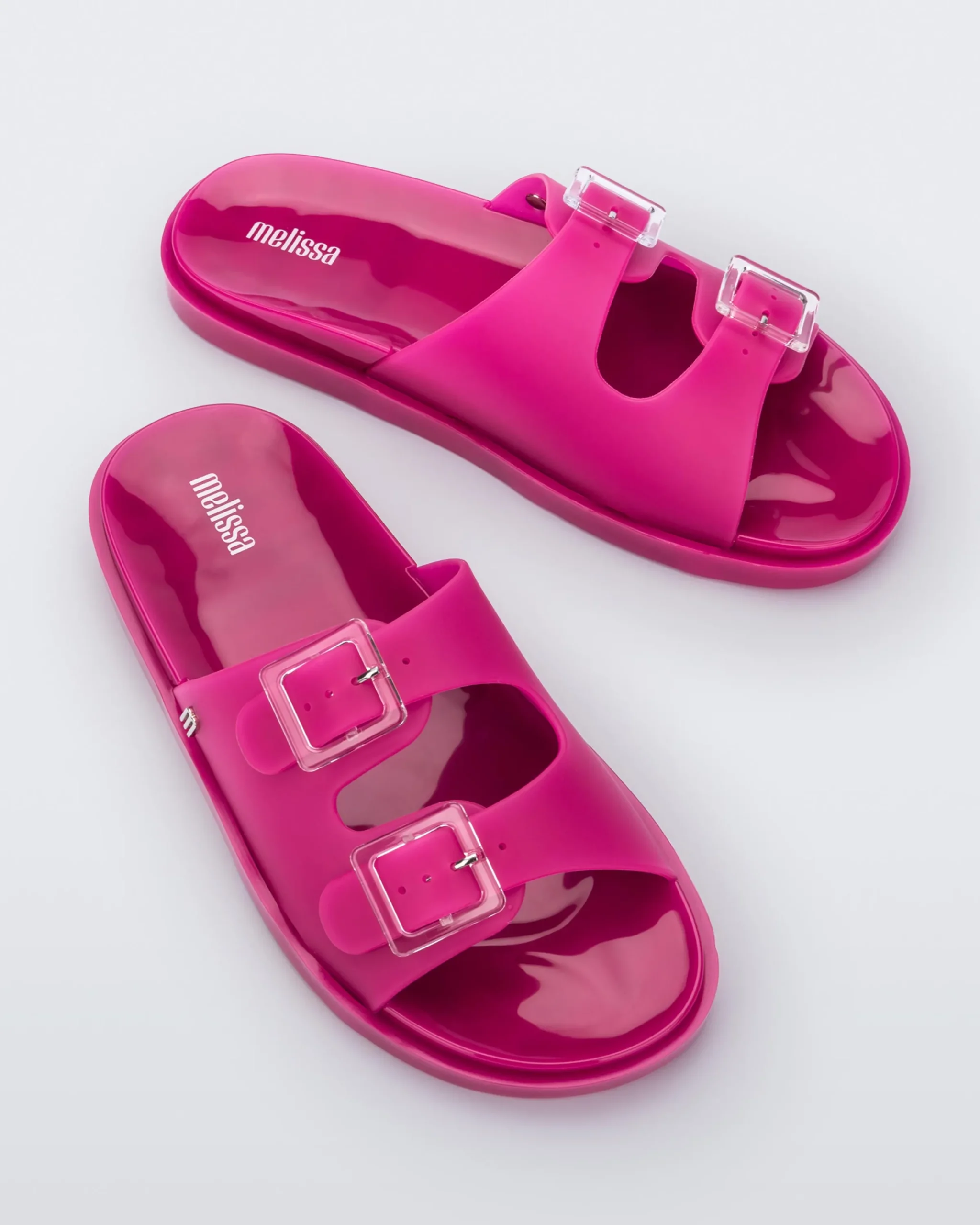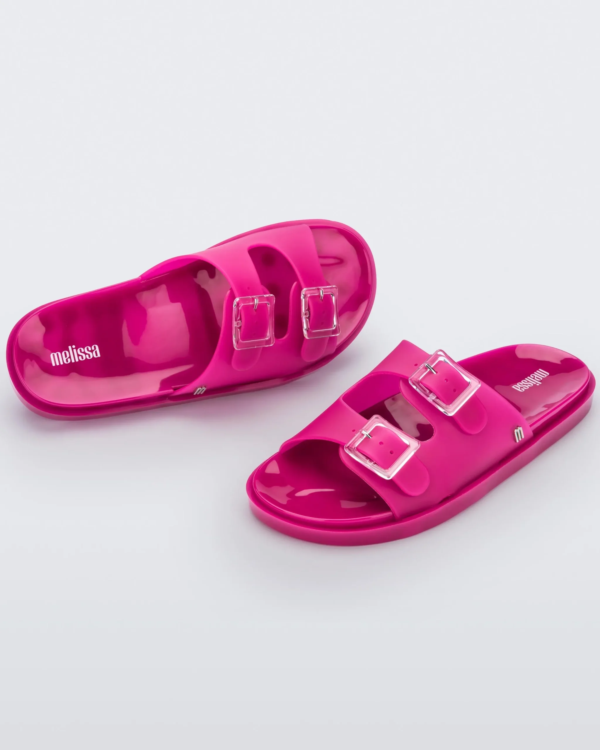 Comfy and fashionable, Melissa Wide is inspired by the super-classic shape that viralized in the 90s. The slide with buckles is one of the most famous style through European summer, thanks to its simplicity, practicability, and versatility.